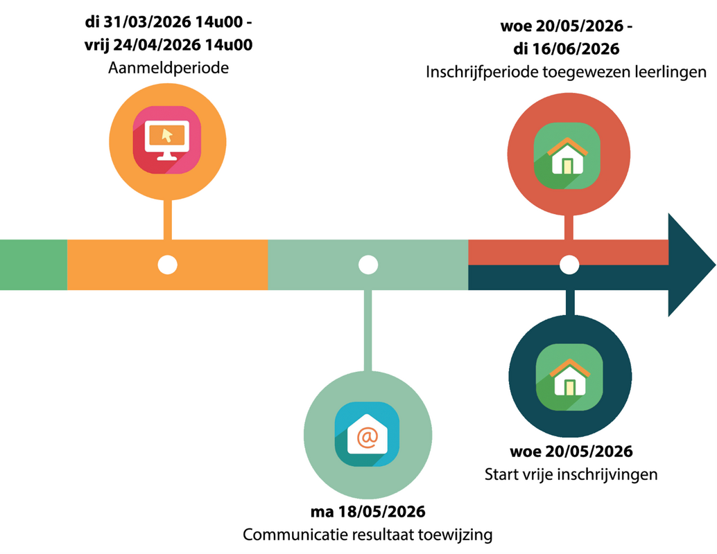 Je meldt aan vanaf 31 maart 2026 (14u00) tot en met 24 april 2026 (14u00) via de website https://aanmelden.school.