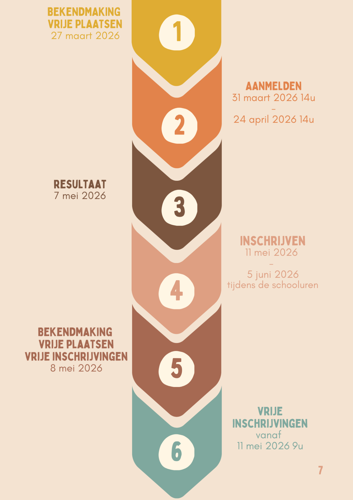 Vanaf maandag 11 mei 2026 om 9u00 kan je je kind gaan inschrijven in een school waar nog vrije plaatsen zijn. Zijn er geen vrije plaatsen, dan kom je op de wachtlijst. Je moet dan zelf naar de school gaan. De inschrijvingen gebeuren in chronologische volgorde.